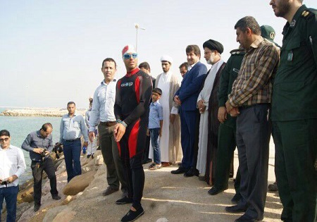عکس/175 دقیقه شنا با دستان بسته به یاد شهدای غواص